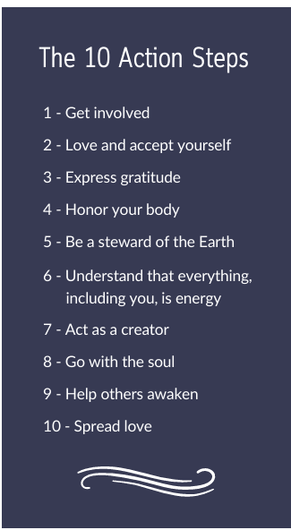 Diese 10 Handlungsschritte sind aus der Buchreihe „Gespräche mit Gott“ des modernen spirituellen Lehrers Neale Donald Walsch abgeleitet und helfen uns, in ein Zeitalter des Bewusstseins überzugehen, das auf Liebe, Mitgefühl und Einheit basiert.